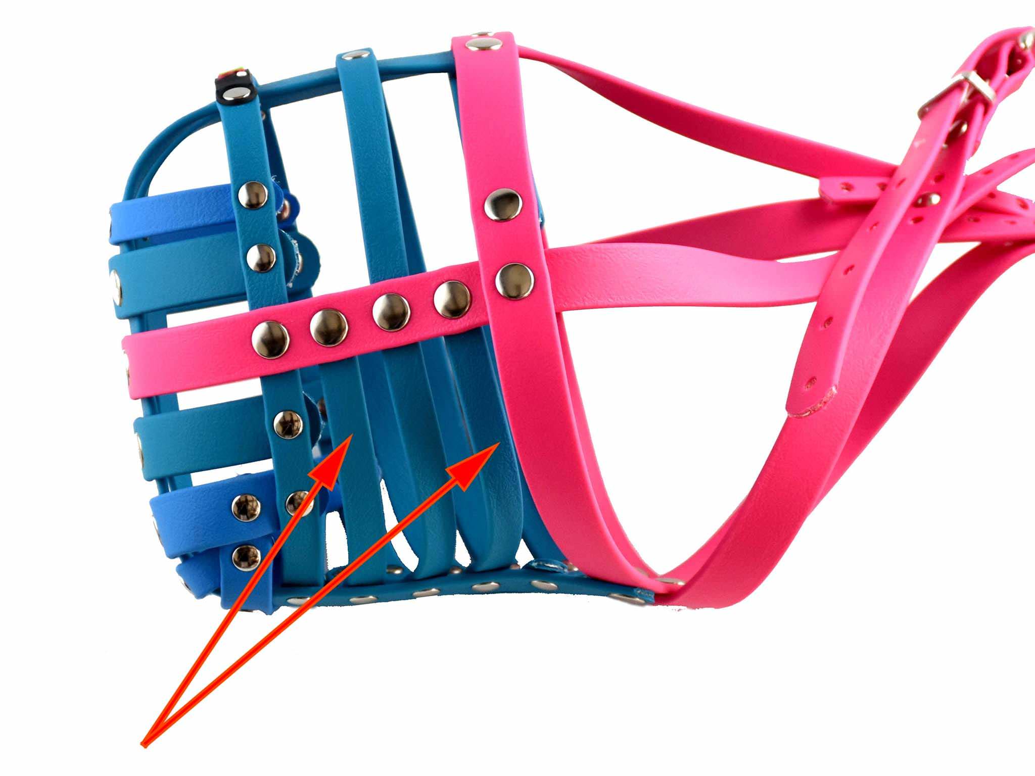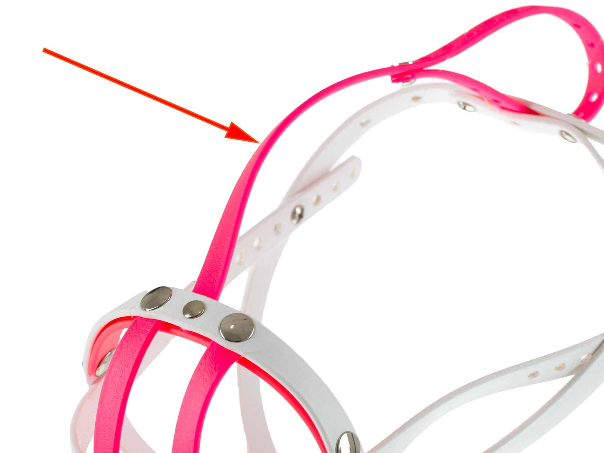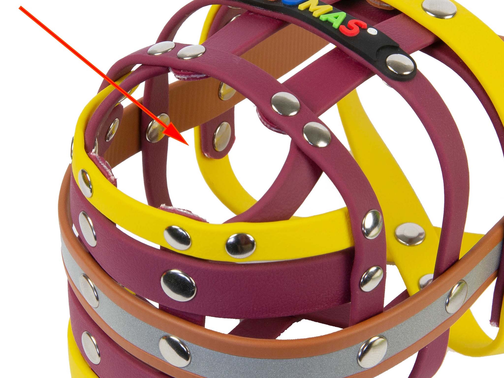 Die Riemenanzahl an den Maulkorb-Seiten wird erhöht. So werden die Riemen-Zwischenräume kleiner und die Sicherheit erhöht. Der Maulkorb wird stabiler und bietet mehr Schutz.