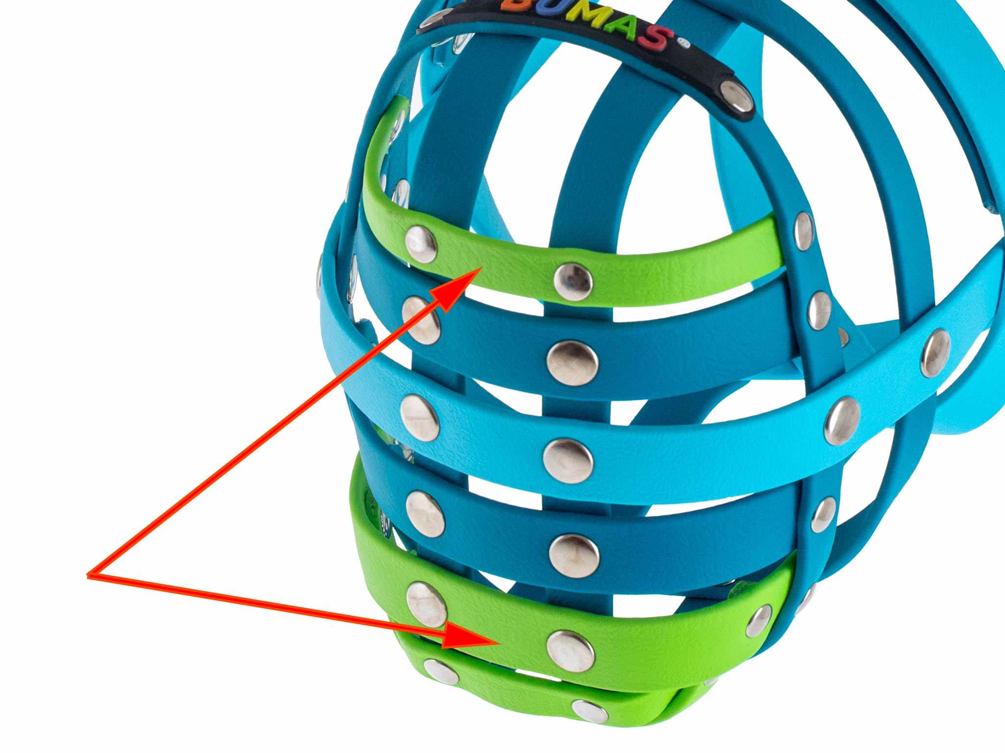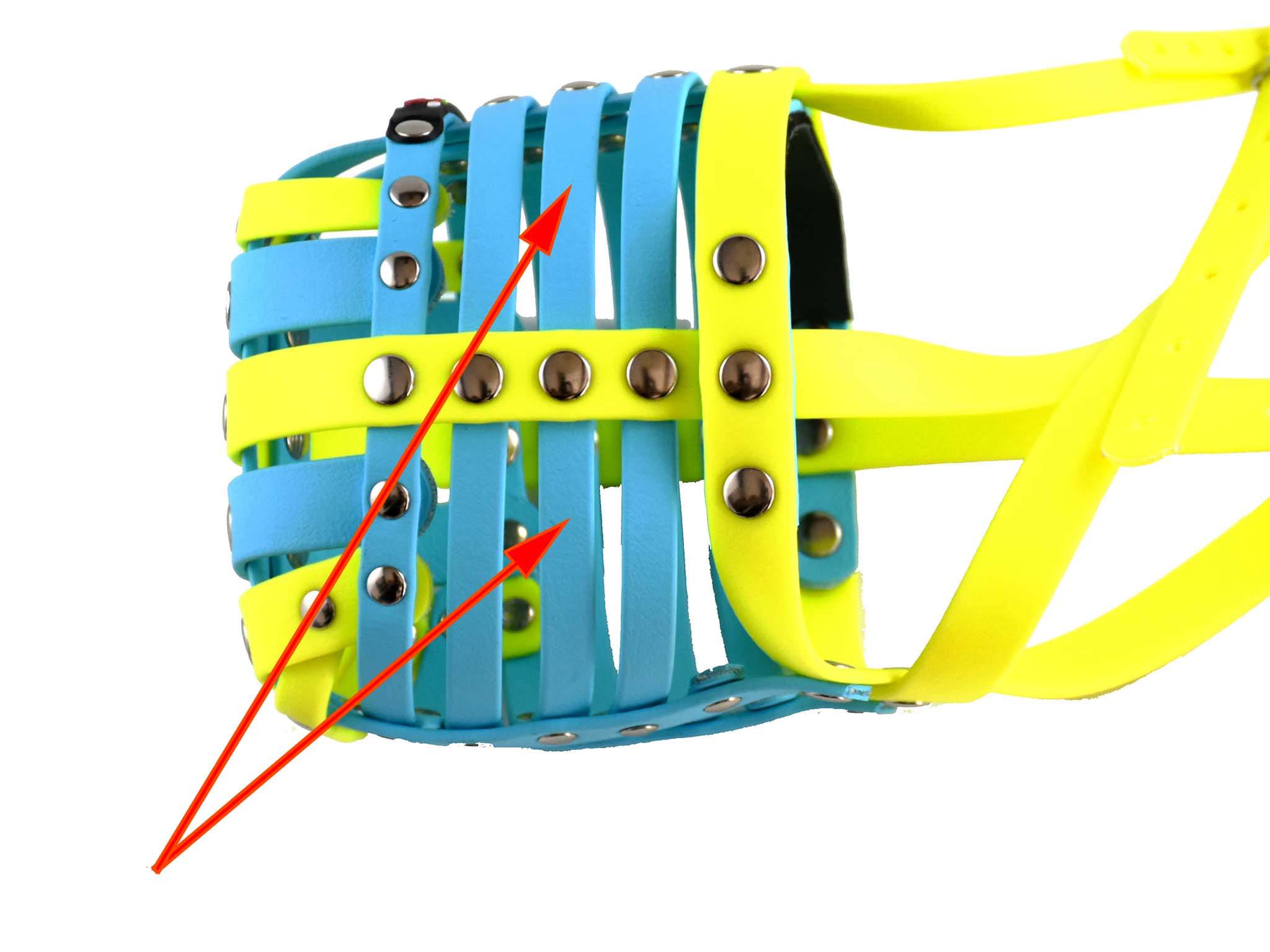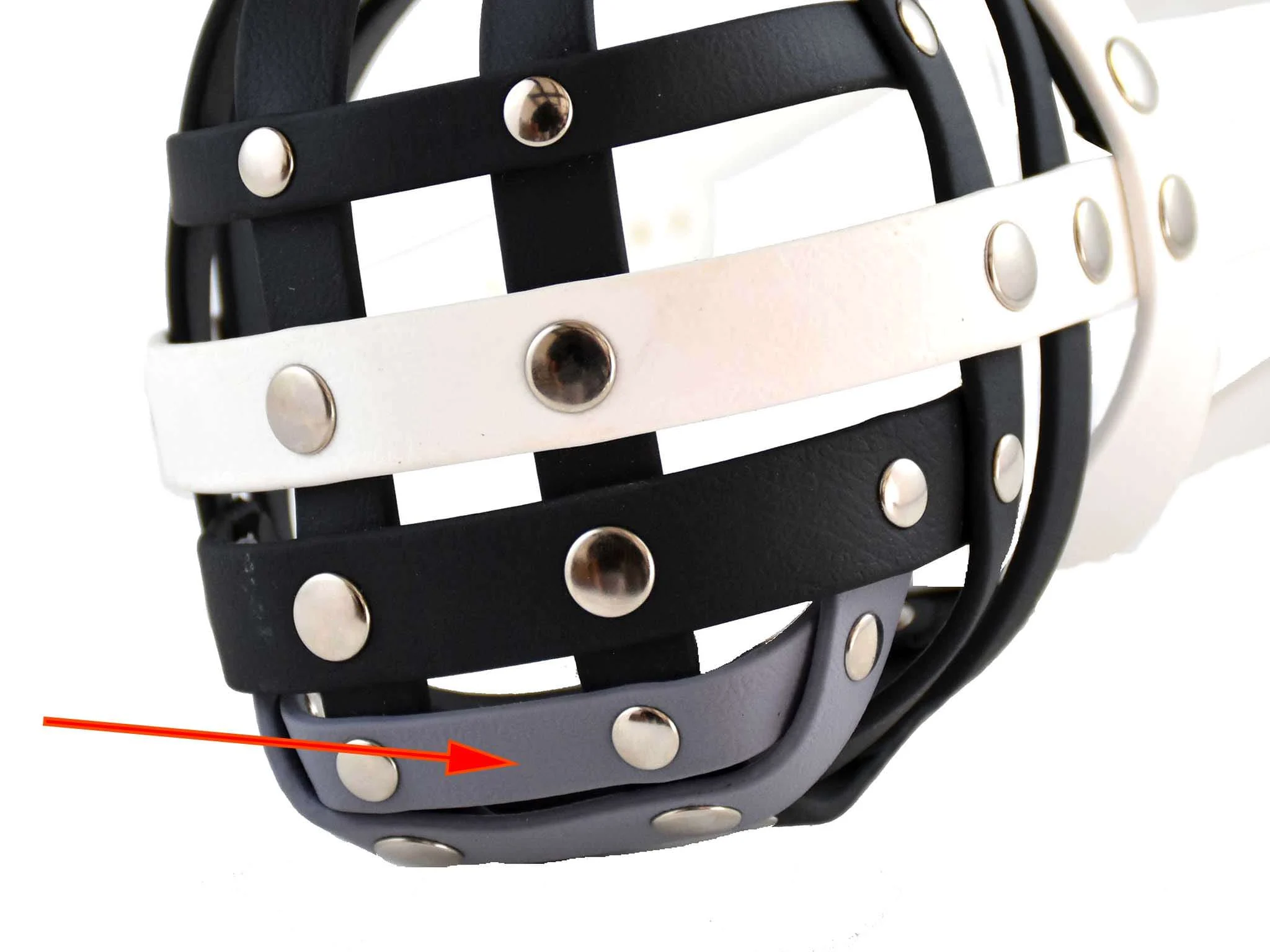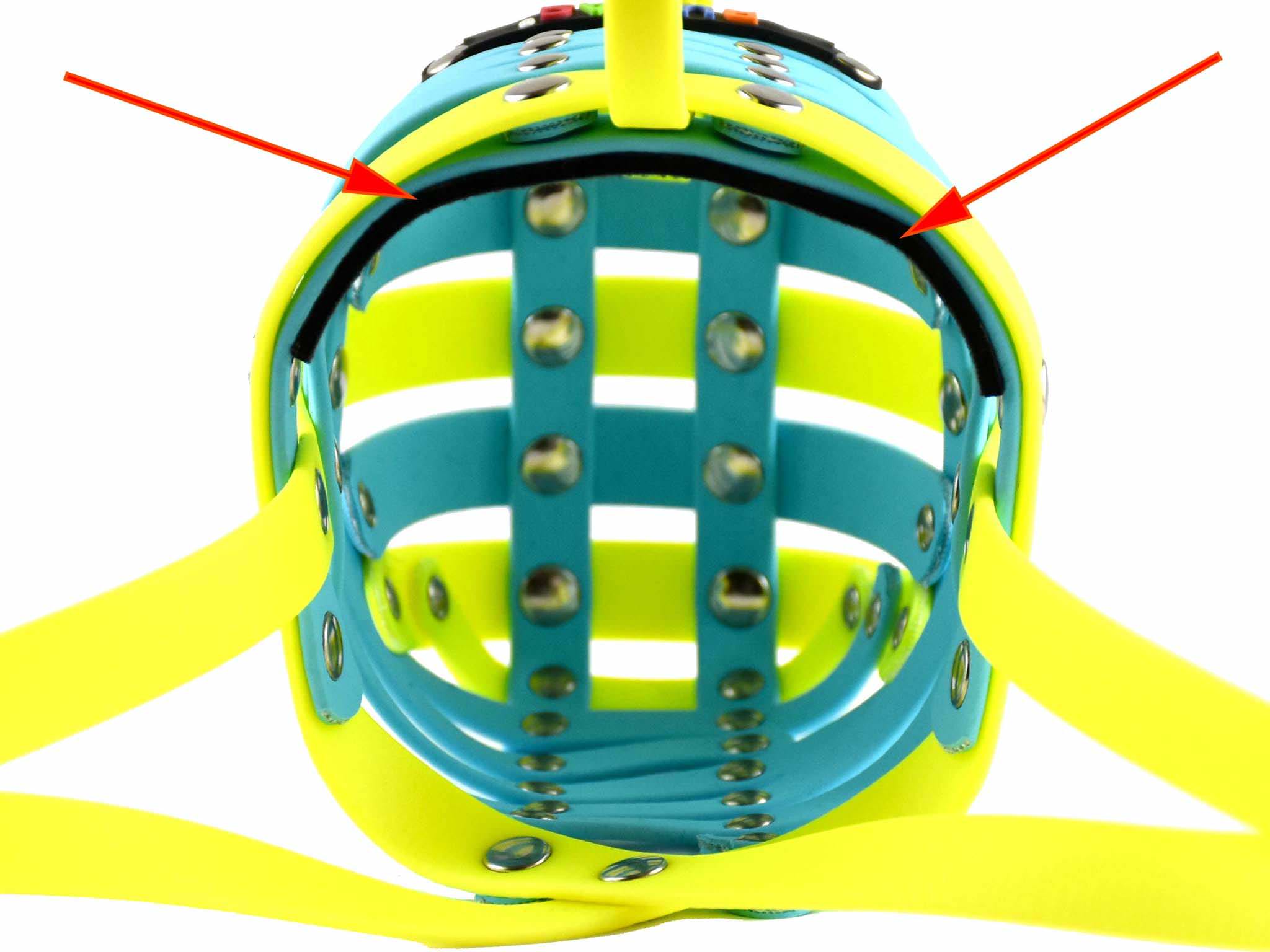 Die Riemenanzahl an den Maulkorb-Seiten wird erhöht. So werden die Riemen-Zwischenräume kleiner und die Sicherheit erhöht. Der Maulkorb wird stabiler und bietet mehr Schutz.